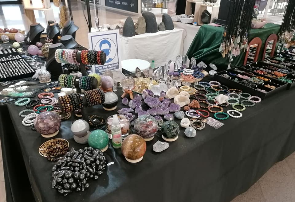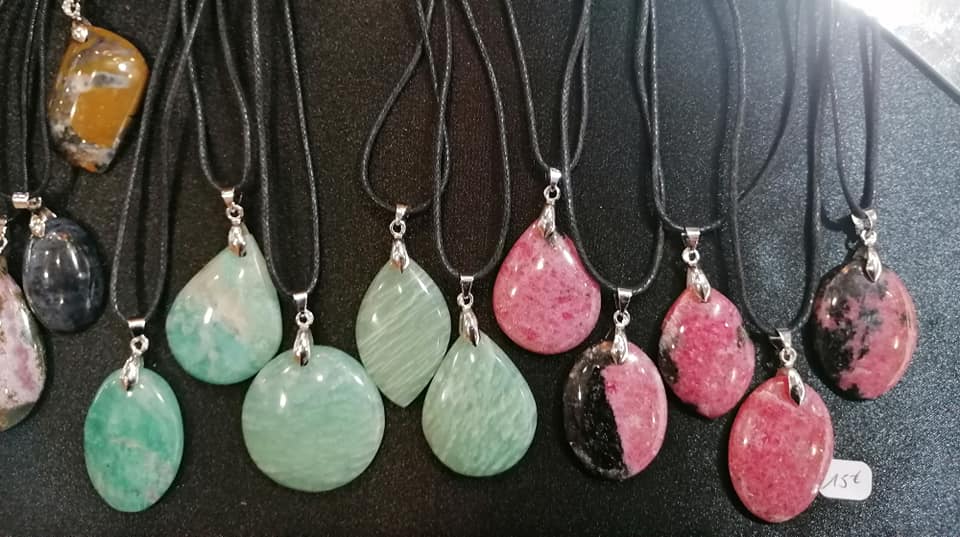 Faces libres, galets, pierres brutes, druses, pendentifs, bracelets, bagues, pointes de Cristal et Citrine, Fleurs de Vie,… Un large choix pour toutes les envies et tous les budgets.